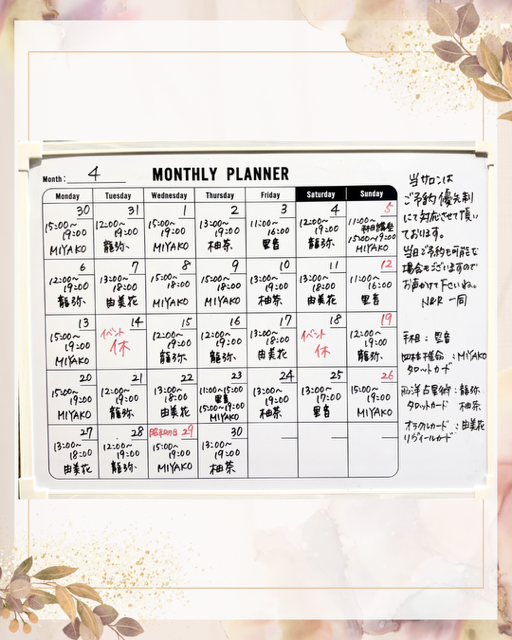 4月のスケジュールです。