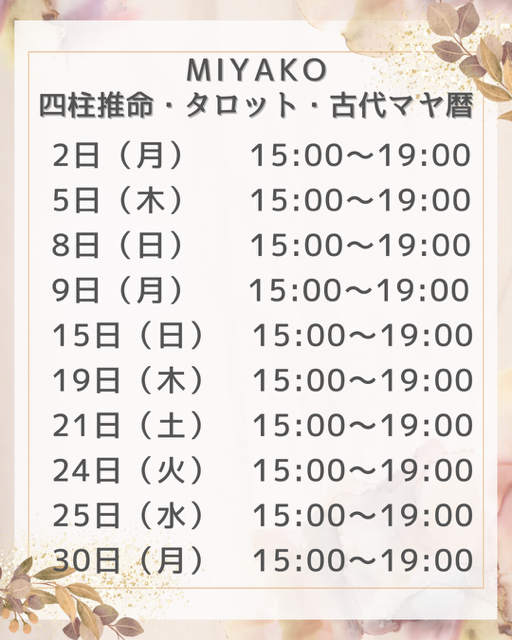四柱推命・タロット・マヤ暦での鑑定と、タロット講座も引き続き開講してますのでよろしくお願いいたします!